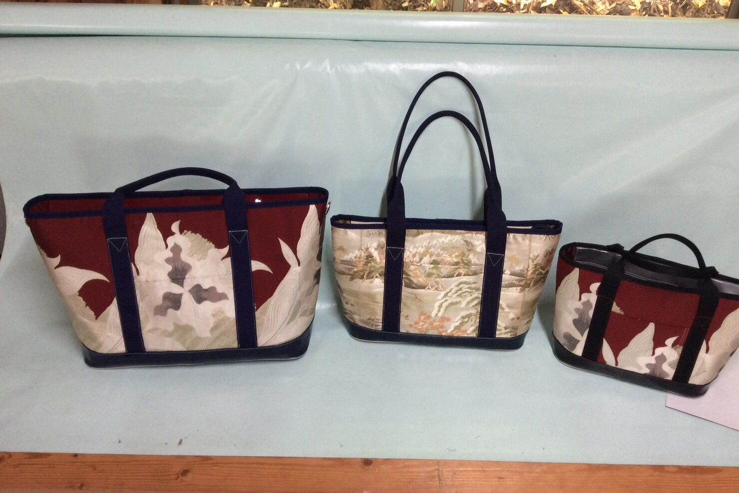 着物の帯をリメイクして作る「和柄エナメルバッグ」の制作を承っております。